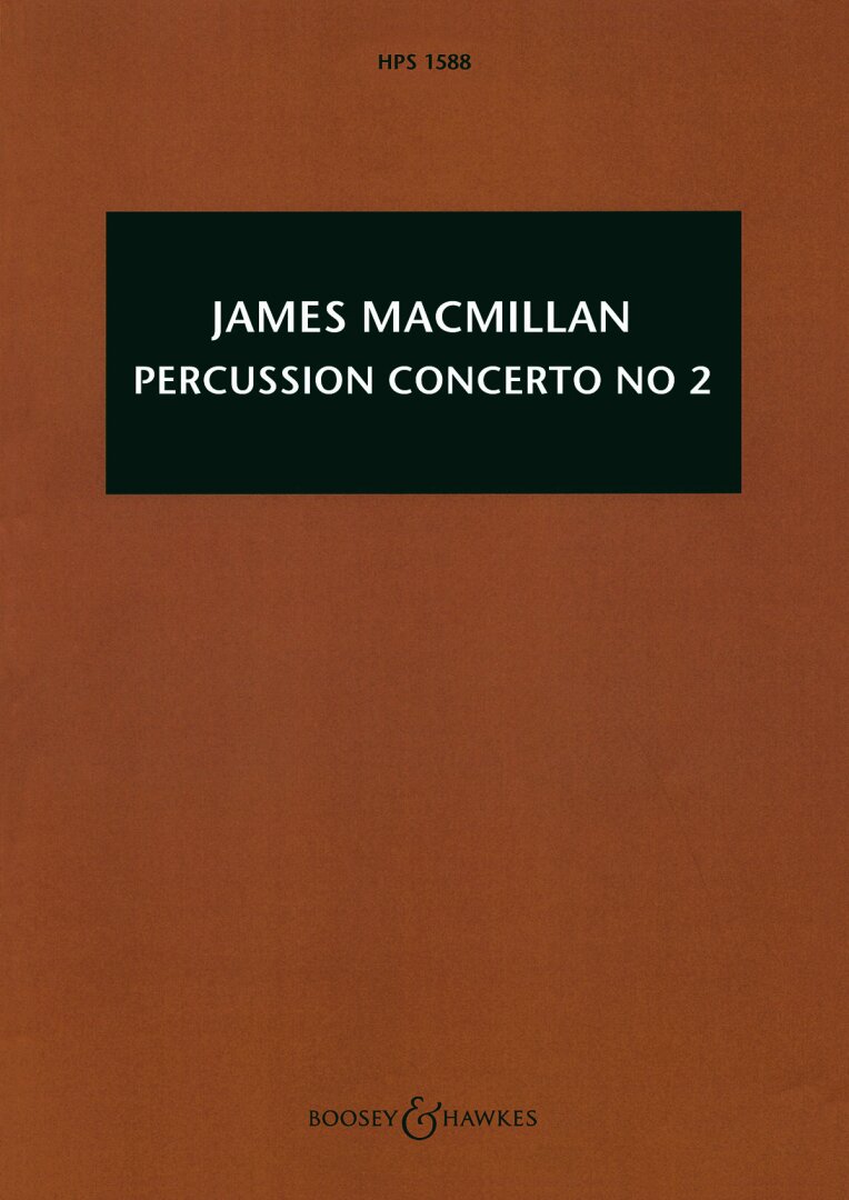 One of MacMillan's earliest successes was his first percussion concerto, Veni, Veni, Emmanuel (1992), firmly established with hundreds of performances to date. Percussion Concerto no 2 was therefore received with great excitement at its premiere in 2014 by Colin Currie and the Netherlands Radio Philharmonic. Like its predecessor, the second concerto is formed in a single, c25-minute span, albeit with contrasting sections, but with full orchestra scoring. The significant array of solo percussion is complemented by two orchestral percussion sections; notably the soloist makes use of a recently invented instrument, the aluphone. Suitable for advanced standard performers.