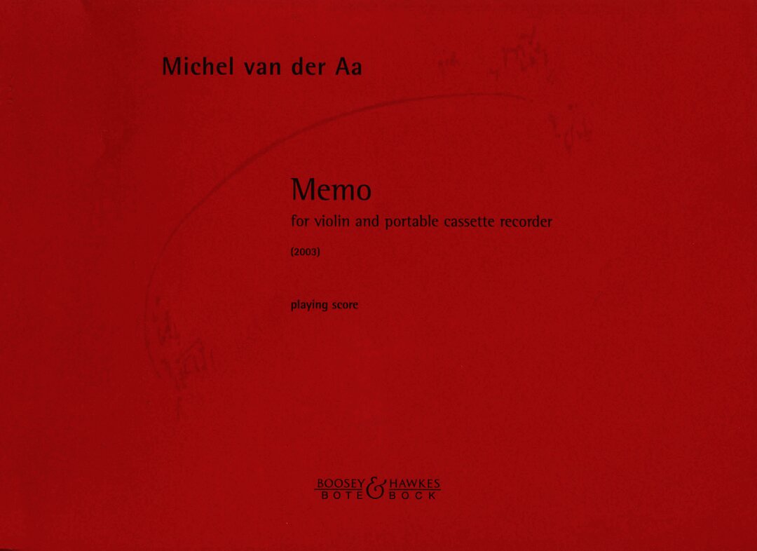 Memo is a theatrical solo for a violinist using a small tape recorder on the stage. Following the detailed instructions in the score, the performer records certain passages played by him- or herself “live” and plays them, again following the detailed instructions, in the style of a backing track - a dialogue between the reproduction of the past and “I” emotions here and now.