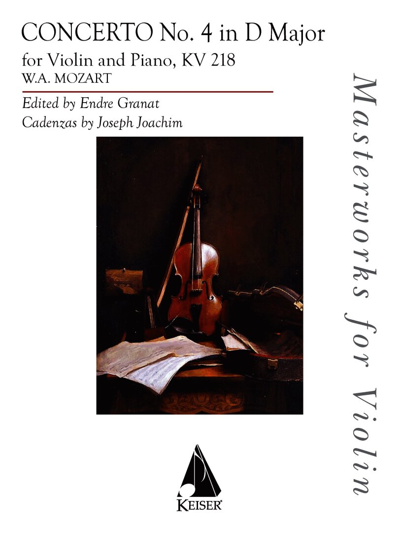 This concerto was composed in 1775 in Salzburg. Mozart was a fine violinist who studied violin with his father, Leopold Mozart. He composed this concerto for himself, but upon completion of the work, Mozart concluded that it was above the level of his mastery of the instrument. Consequently, the first performance was given by Antonio Brunetti, Concertmaster of the Salzburg Court Orchestra. This publication is a unique performance edition with Cadenzas by Joseph Joachim and practical fingerings and bowings by Jascha Heifetz acclaimed student, Endre Granat.