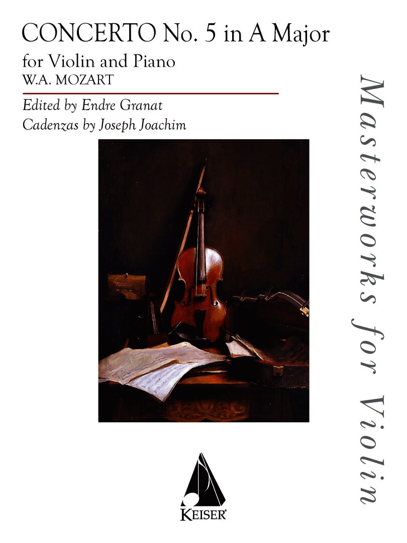 In his Concerto No. 5, the orchestras introduction (Allegro Aperto) is followed by the solo violin's entrance (Adagio), followed by the solo violin's exposition with the orchestral introduction as the accompaniment. The second movement (Adagio) is one of the finest in violin literature, however, at the request of the first soloist to play the work, Mozart composed the Adagio in E Major, KV 261 as a substitute for the original slow movement. The last movement, Rondeau, is based on a minuet theme. In the middle of the movement, a section of Turkish-themed music is written, lending to the nickname of this concerto as 'Turkish.' This indispensable performance edition includes the Cadenzas of Joseph Joachim, with the practical bowings and fingerings by Jascha Heifetz' acclaimed student, Endre Granat, informed by decades of virtuosic performing experience.”